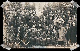 Foto de los alumnos y maestros de la escuela NAKIJIN-SON KANESHI JUNGO KOTO SHOGAKO.