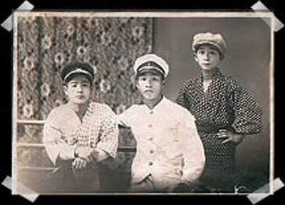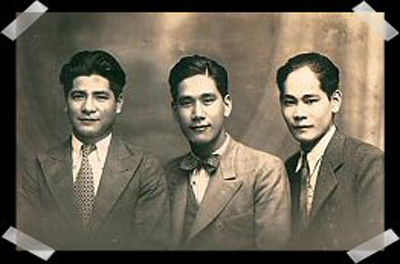 Los hermanos varones de Taka Yonamine: Hajime (medio) y Tetsu (derecha) y el primo hermano Hidetsugu Katena (izquierda).