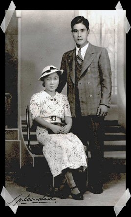 Los recién casados Takako Yonamine de Uehara (23 años) y Kiyotomi Uehara (27 años).