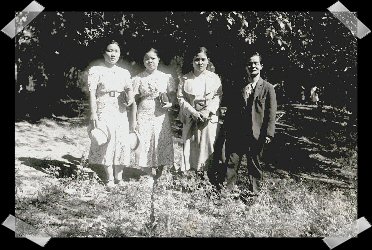 De izquierda: Taka Yonamine de Uehara (Nakijin, Okinawa, Japón) (esposa de Kiyotomi Uehara), Chiyoko Uchima de Uehara (Nakijin, Okinawa, Japón), Hana Katena (Nakijin, Okinawa, Japón) y Hidetsugu Katena (Nakijin, Okinawa, Japón).