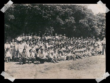 Despedida del Sr. Masao Uchima que regresa a Okinawa, Japón. Estan todas las familias de los hermanos Uehara y amigos. En esta casa de la calle Tucumám 242 vivían varias familias japonesas: varios de los hermanos Uehara con sus respectivas familas y la familia Fushimi y además funcionaba la escuela japonesa de Córdoba. La casa tenía una planta romana.