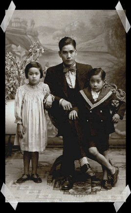 Kiyotomi Uehara (25 años) con sus sobrinos Teresa Uehara y Julio Uehara, hijos del hermano mayor Kiyomasa Uehara.