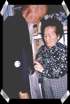 Kiyotomi Uehara (94 años) y la señora Tomiko.Kamida (Katsuren Henna, Urima shi, Okinawa, Japón), miembro de la ONG NIKKEI SOLIDARIA.