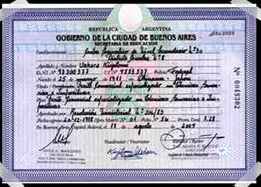 Certificado de estudios secundarios egresado el 20 de diciembre de 1978 y cursados en el Centro Educativo de Nivel Secundario N° 30 (CENS 30) de la Secretaría de Educación del Gob. de la Ciudad de Bs.As.