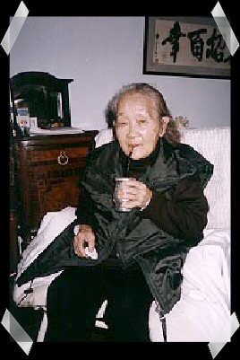 Taka Yonamine de Uehara (85 años) en el patio de su casa.