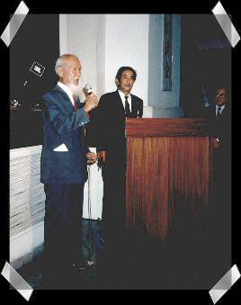 Kiyotomi Uehara (86 años) hace uso de la palabra para agradecer el diploma otorgado por el Sr. Gobernador Dr. Masahide Ota.